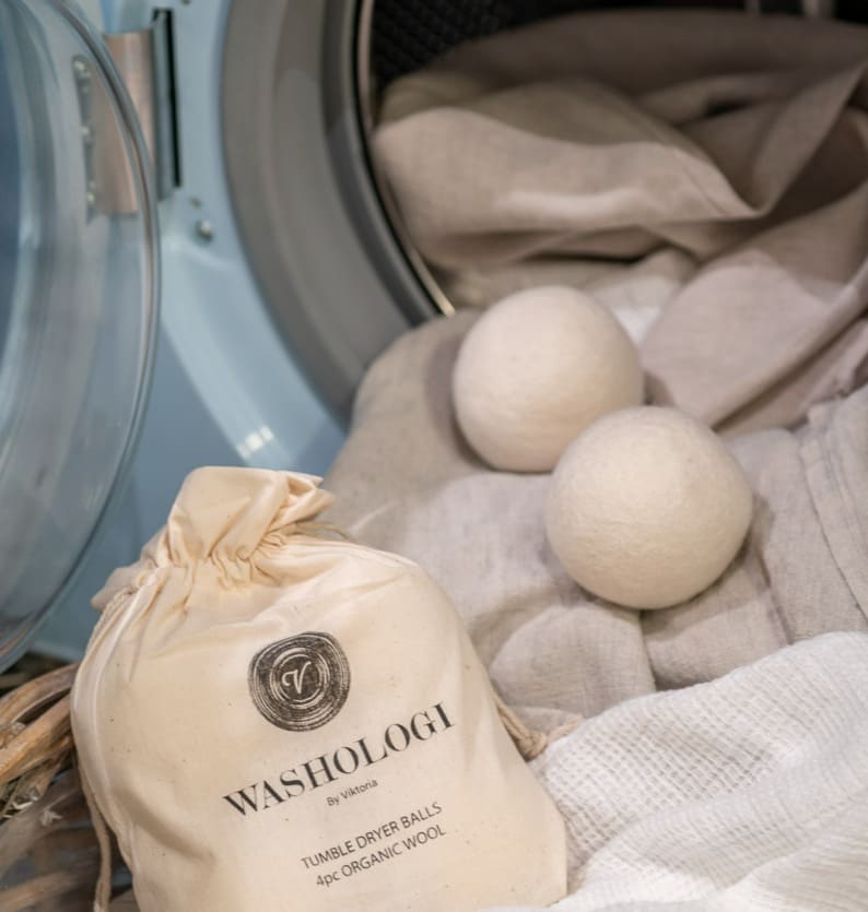 Wenn du deine Kleidungsstücke im Trockner trocknen möchtest, dann am besten so: Verwende unsere Tumble Dryer Balls, die deine Kleidung pflegen und weich machen und gleichzeitig die Trockenzeit verkürzen.